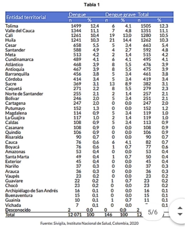 De acuerdo a la Contraloría General de la República, el departamento de Tolima tiene 1.499 casos de dengue clásico, lo que equivale a un 12.4 por ciento y con dengue grave 1.505 casos, ocupando el primer lugar en el país, seguido del Valle del Cauca con 1.344 casos de dengue clásico y 1.351 de dengue hemorrágico.