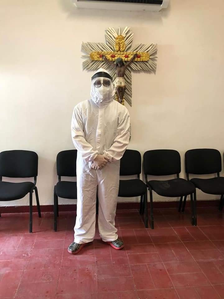 "Cabe resaltar que ponerse un overol con una temperatura promedio de El Espinal +/- 36° C hace que sea más díficil. La incomodidad dada por el sudor, por las lesiones que pueden generar los elementos de protección personal, tales como caretas, tapabocas N95 y convencional, gorro, bata, polainas, zapatos los cuales uso exclusivamente para la atención de los pacientes, guantes que al retirarlos se evidencia la sensación de estar en una tina climatizada con agua caliente, después pasar por una aspersión para evitar transmitir o contagiarse por contacto. Verán en las fotos como uso mis elementos que algunos han sido del bolsillo propio o de donaciones y otros de dotación", explica el galeno.